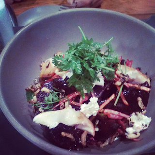 The beets & butterfish blew us away. Salt roasted beets, smoked black cod, horseradish dressing, and blue cheese: we would never ever put something like this together at home. But now, my MIL and I want to try and replicate it someday. Highly recommend this dish. All the flavors just worked together beautifully.